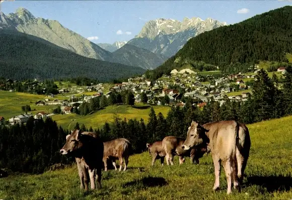 Ak Seefeld in Tirol, Gesamtansicht, Kühe
