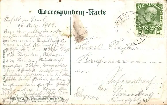 Zustand, siehe Scan, gelaufen, 1908 - ca 14 cm X 9 cm