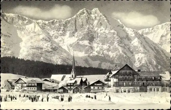 Ak Seefeld in Tirol, Winterpanorama, Ortsansicht gegen Wettersteingebirge