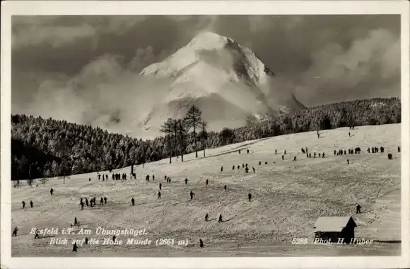Ak Seefeld in Tirol, am Übungshügel, Hohe Munde