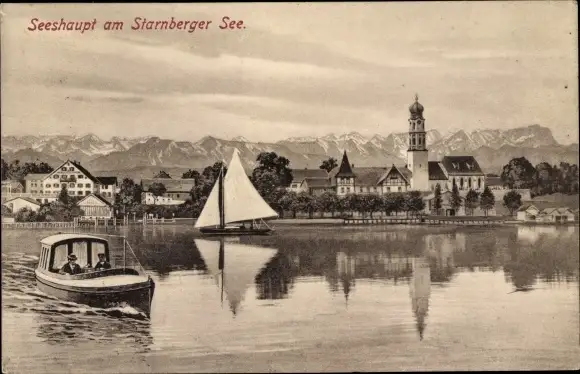 Ak Seehaupt am Starnberger See, Segelboot, Kirche