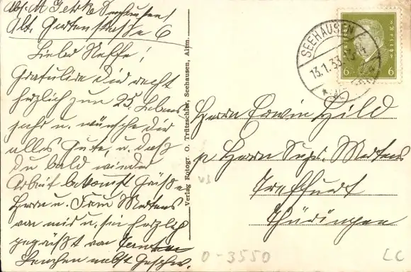 Zustand, siehe Scan, gelaufen, 1933 - ca 14 cm X 9 cm