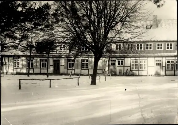 Ak Seeheilbad Zingst an der Ostsee, Fachwerkhaus im Winter