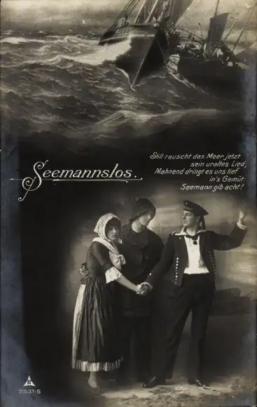 Ak Seemannslos, Kriegsschiffe im Gefecht, Sturm, Soldatenliebe