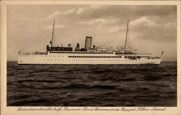 Ak Seemotorschnellschiff Preußen, Reederei Braeunlich Stettin