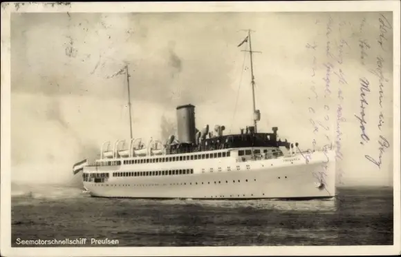 Ak Seemotorschnellschiff Preußen, Stettiner Dampfschiffs-Gesellschaft J. F. Braeunlich