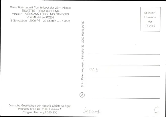 Ak Seenotkreuzer mit Tochterboot der 23 m Klasse, Minden, DgzRS
