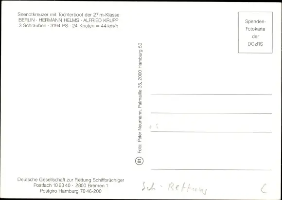 Ak Seenotkreuzer mit Tochterboot der 27m Klasse, Hermann Helms, DGzRS