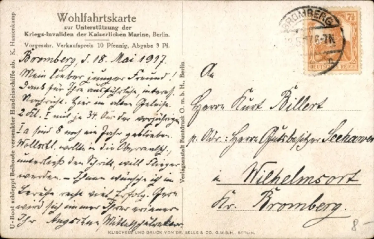 Zustand, siehe Scan, gelaufen, 1917 - ca 14 cm X 9 cm