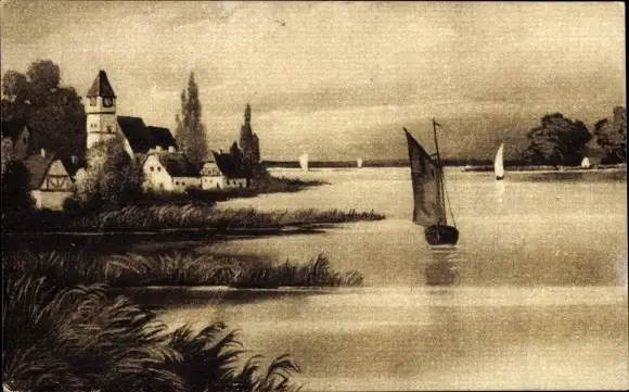 Ak Seepartie mit Segelboot