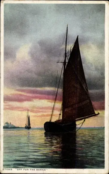 Ak Segelboot, Sonnenuntergang, Fischerboot