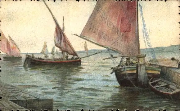 Ansichtskarte, Postkarte, Hafen, Schiffe, Boote, Dampfer, Boot