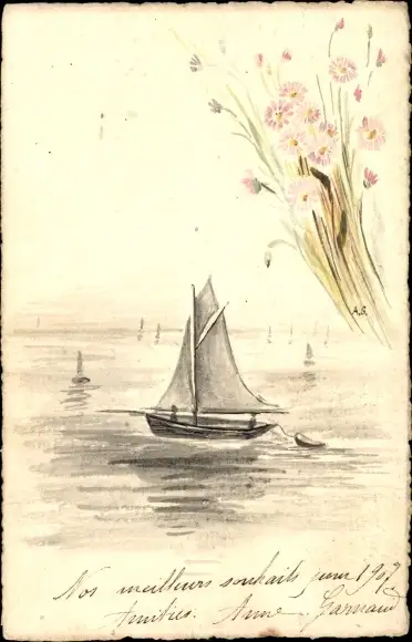 Ak Segelpartie, Segelboote, Blumenstrauß, Blumen, Meer