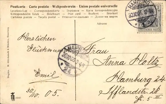 Zustand, siehe Scan, gelaufen, 1905 - ca 14 cm X 9 cm