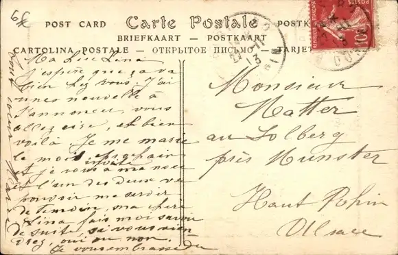 Zustand siehe Scan, gelaufen, 1913 - ca 14 cm X 9 cm