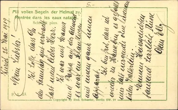 Ak Segelschiff, Mit vollen Segeln der Heimat zu