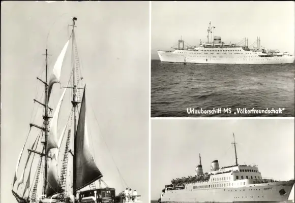 Ak Segelschiff, Urlauberschiff MS Völkerfreundschaft, Fährschiff Sassnitz