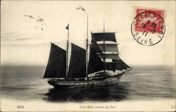 Ak Segelschiff verlässt den Hafen, Dreimaster, Trois Mats sortant du Port
