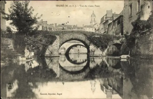 Ak Segré Maine-et-Loire, Vue du vieux Pont