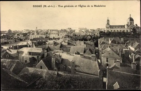 Ak Segré Maine-et-Loire, Vue générale et l' Église de la Madeleine