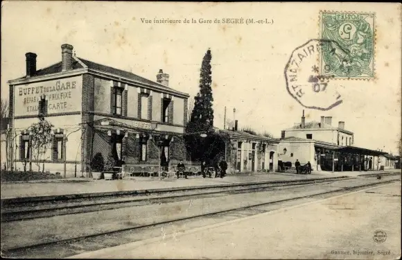 Ak Segré Maine et Loire, Vue interieure de la Gare