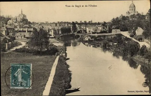 Ak Segré Maine et Loire, Vues de Segre et de l'Oudon
