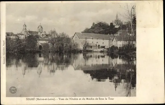 Ak Segré Maine et Loire, Vues de l'Oudon et du Moulin de Sous la Tour
