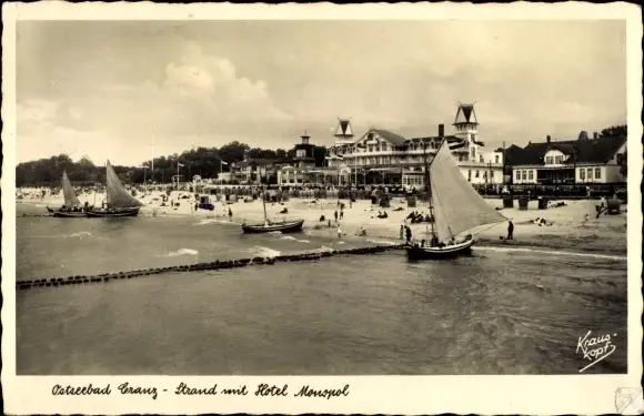 Ak Selenogradsk Cranz Ostpreußen, Strand, Hotel Monopol, Segelboote