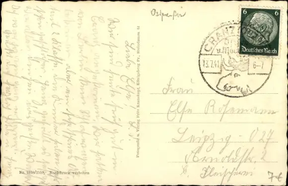 gelaufen 1941, Leim gelöst rechts unten, sonst guter Zustand