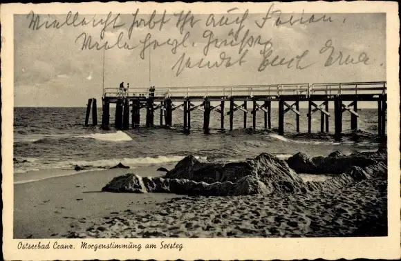 Ak Selenogradsk Ostseebad Cranz Ostpreußen, Morgenstimmung am Seesteg