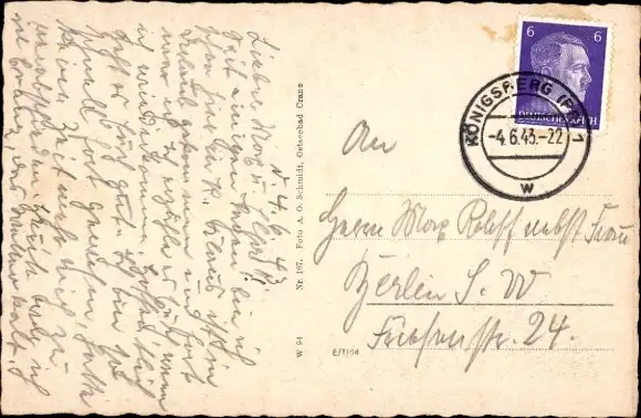 Zustand, siehe Scan, gelaufen, 1943 - ca 14 cm X 9 cm