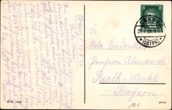 Zustand, siehe Scan, gelaufen, 1928 - ca 14 cm X 9 cm