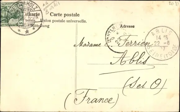 Zustand, siehe Scan, gelaufen, 1907 - ca 9 cm X 14 cm
