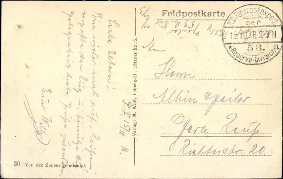 Zustand siehe Scan, 1915, gelaufen - ca 14 cm X 9 cm
