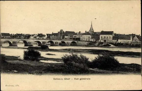 Ak Selles sur Cher Loir et Cher, vue générale, pont