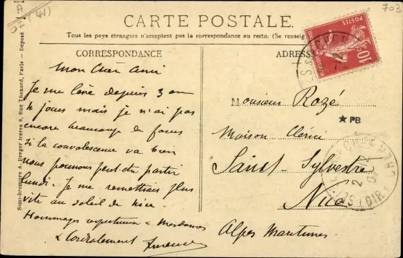 gelaufen 1907, Eckknick links unten, sonst guter Zustand