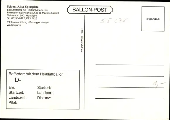 Ak Selzen in Rheinhessen, Startplatz, Heißluftballons, Freiballon-Sportschule