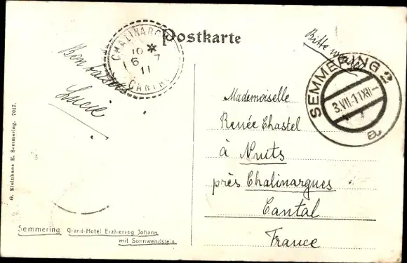 Ak Semmering in Niederösterreich, Grand Hotel Erzherzog Johann mit Sonnwendstein
