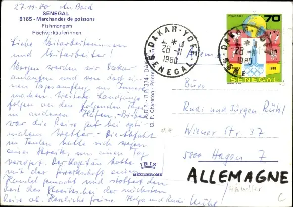 Zustand, siehe Scan, gelaufen, 1980 - ca 15 cm X 10 cm
