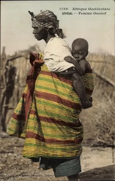 Ak Senegal, Frau vom Volk Ouolof, Kind im Tragetuch