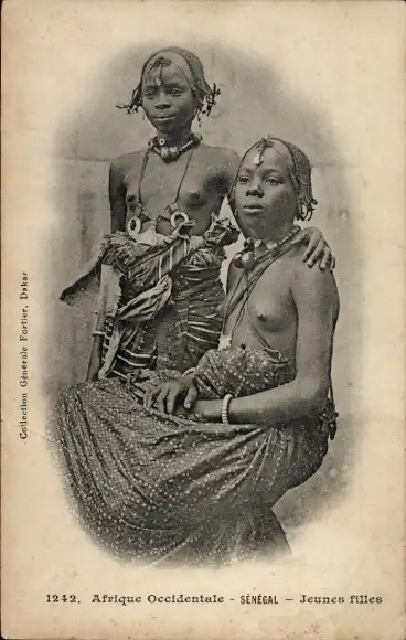 Ak Senegal, Zwei Mädchen in Volkstrachten