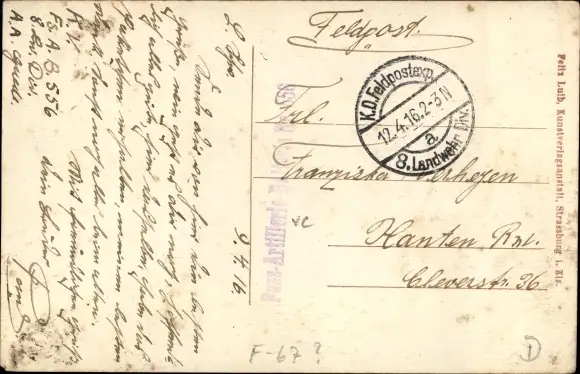 Zustand, siehe Scan, gelaufen, 1916 - ca 14 cm X 9 cm