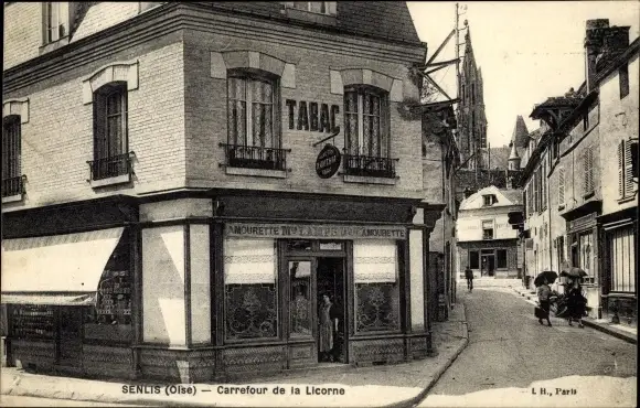 Ak Senlis Oise, Carrefour de la Licorne, Tabac Geschäft