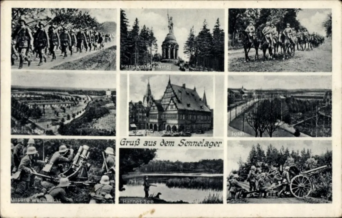 Ak Sennelager Paderborn in Nordrhein Westfalen, Hermanns Denkmal, Rathaus, See