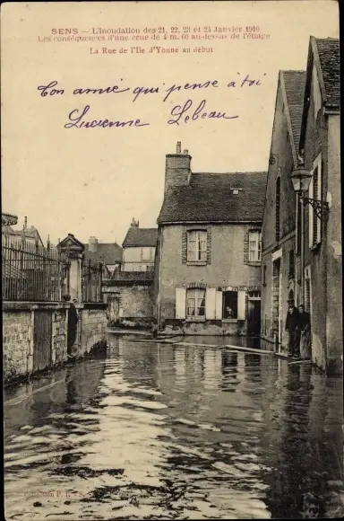 Ak Sens Yonne, La Rue de l'Ile d'Yonne au debut