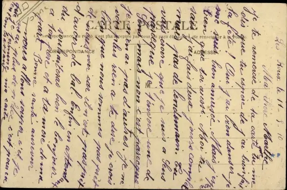 ungelaufen, datiert 1910, Rückseite beschrieben, sehr guter Zustand