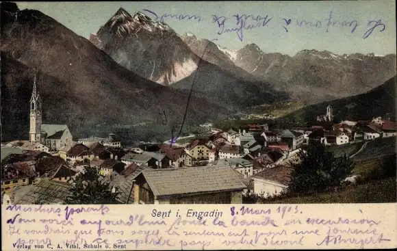 Ak Sent Scuol Kt. Graubünden Schweiz, Gesamtansicht