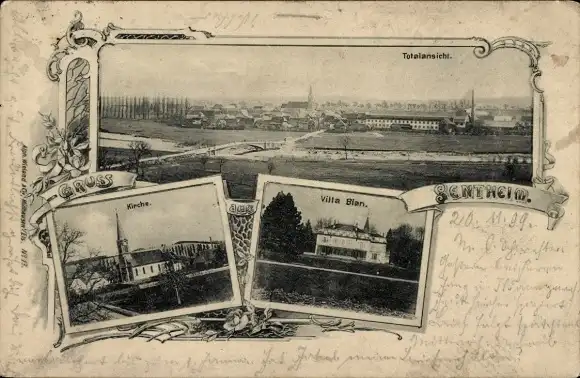 Ak Sentheim Elsass Haut Rhin, Gesamtansicht, Kirche, Villa Blan
