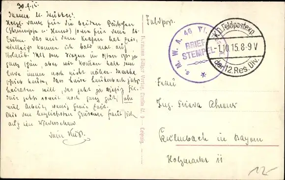 Zustand, siehe Scan, gelaufen, 1915 - ca 14 cm X 9 cm