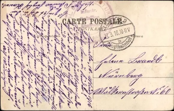 Zustand, siehe Scan, gelaufen, 1916 - ca 14 cm X 9 cm